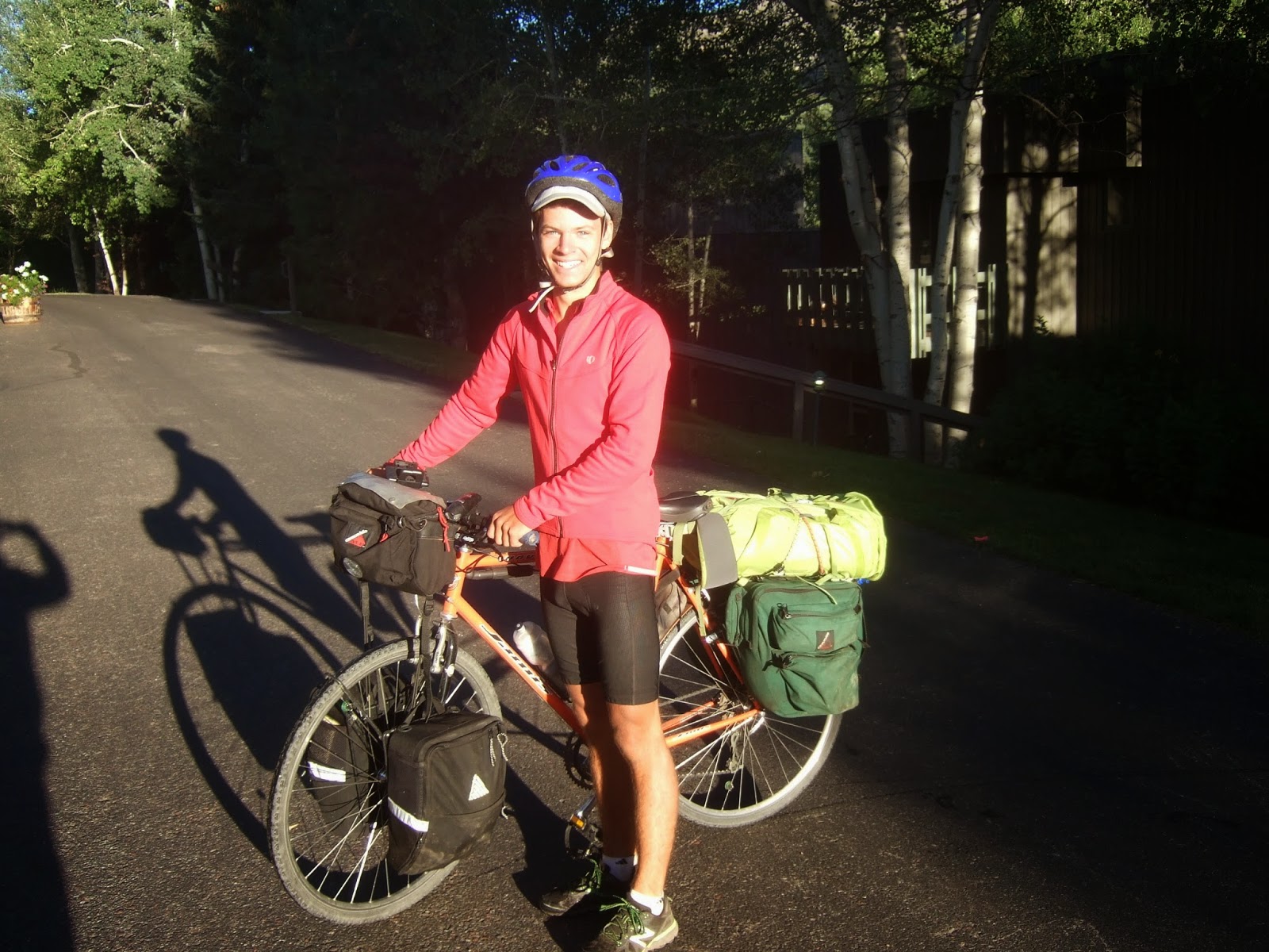 Here on his own very heavily laden bike setting off for Independence Pass and eventually Estes Park. Good luck Matt. |